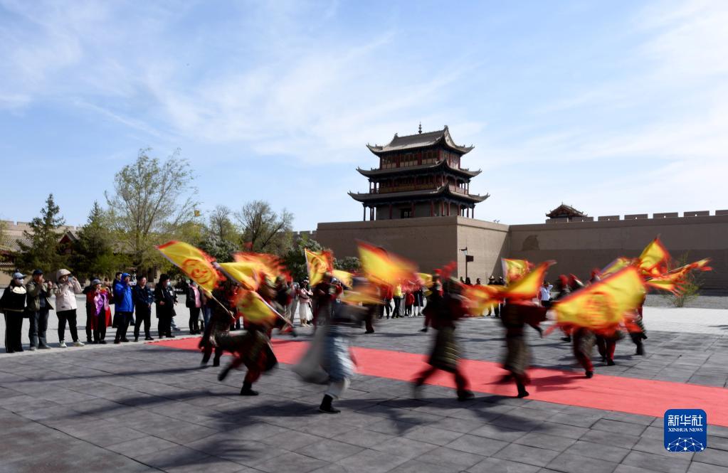 5月10日,游客在嘉峪關(guān)關(guān)城景區觀(guān)看節目。