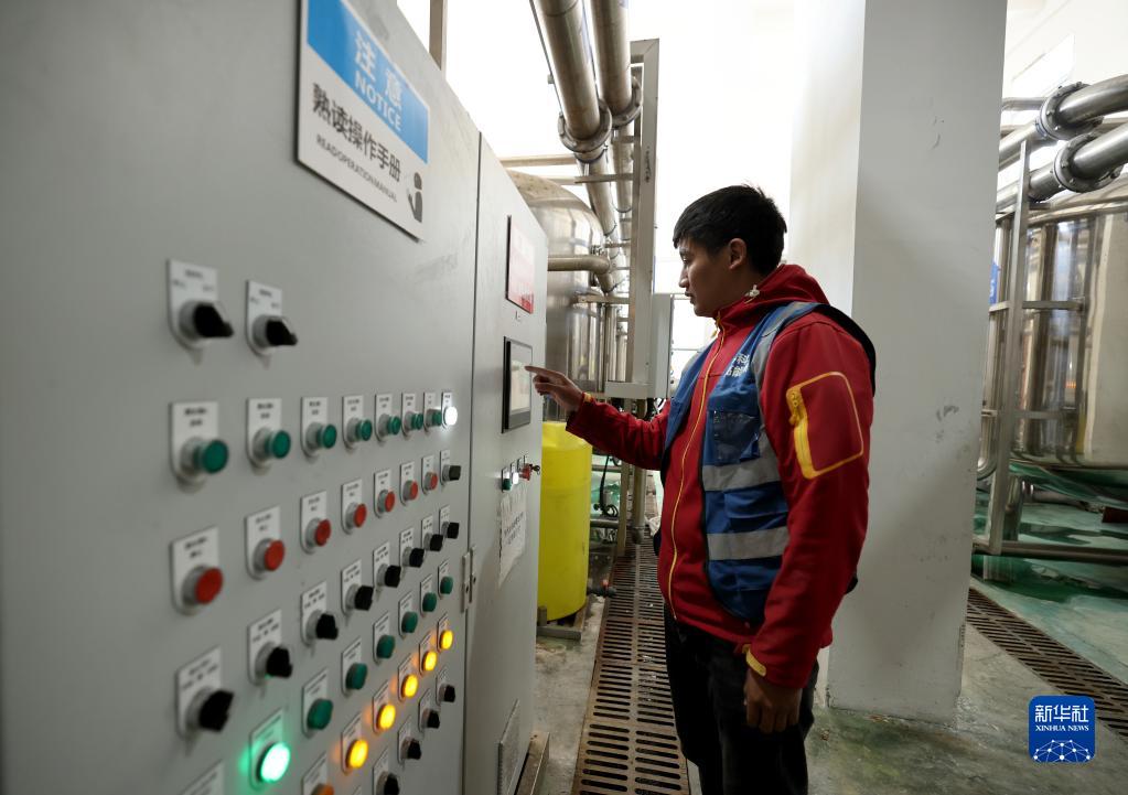 4月22日,在高海拔宇宙線(xiàn)觀(guān)測站觀(guān)測基地水處理機房,工作人員在操作水處理相關(guān)程序。