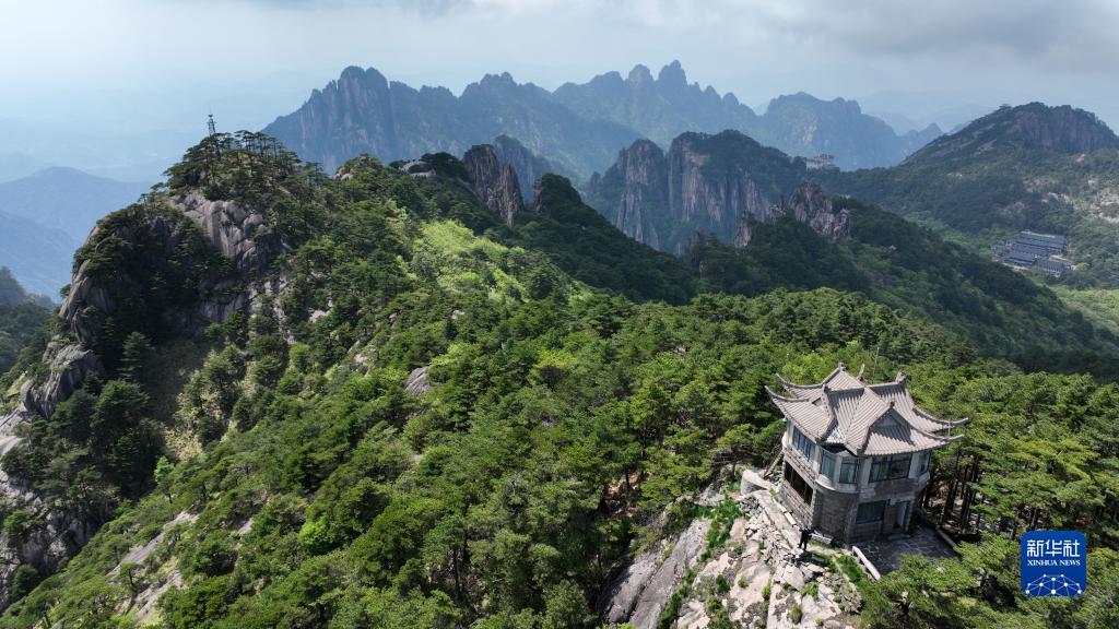 這是5月8日拍攝的黃山風(fēng)景區平天矼瞭望哨(無(wú)人機照片)。