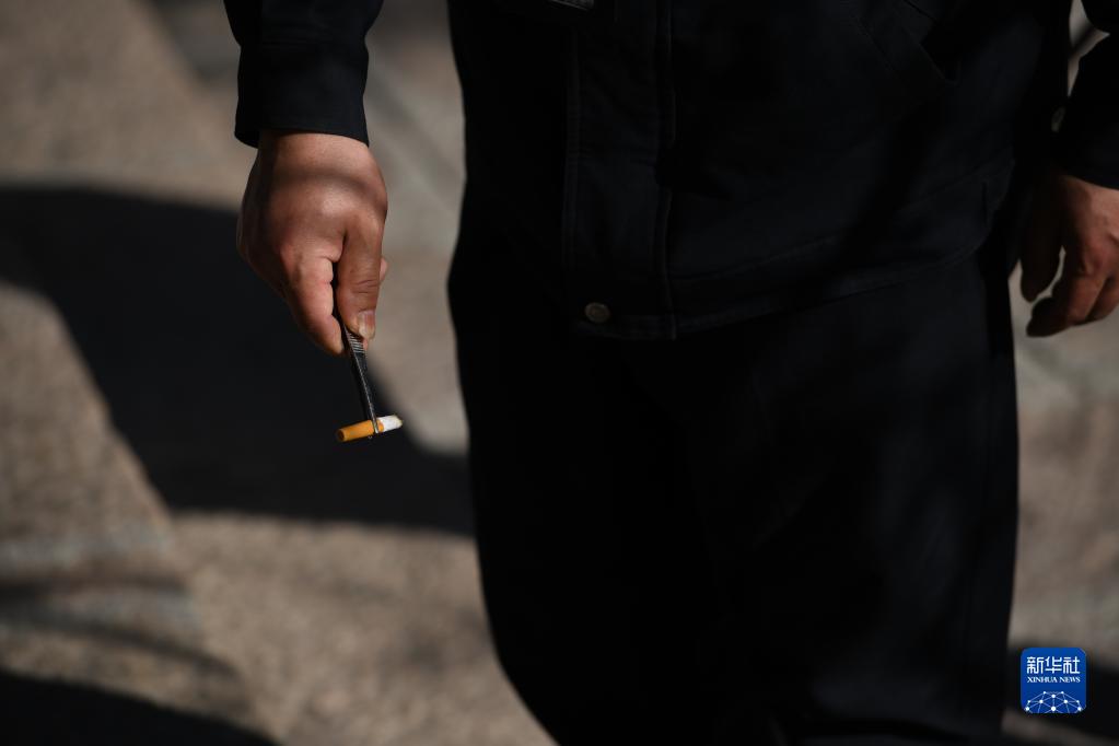 4月21日,秦志平在黃山風(fēng)景區進(jìn)行路段巡查時(shí)將地面的煙頭放進(jìn)指定位置。