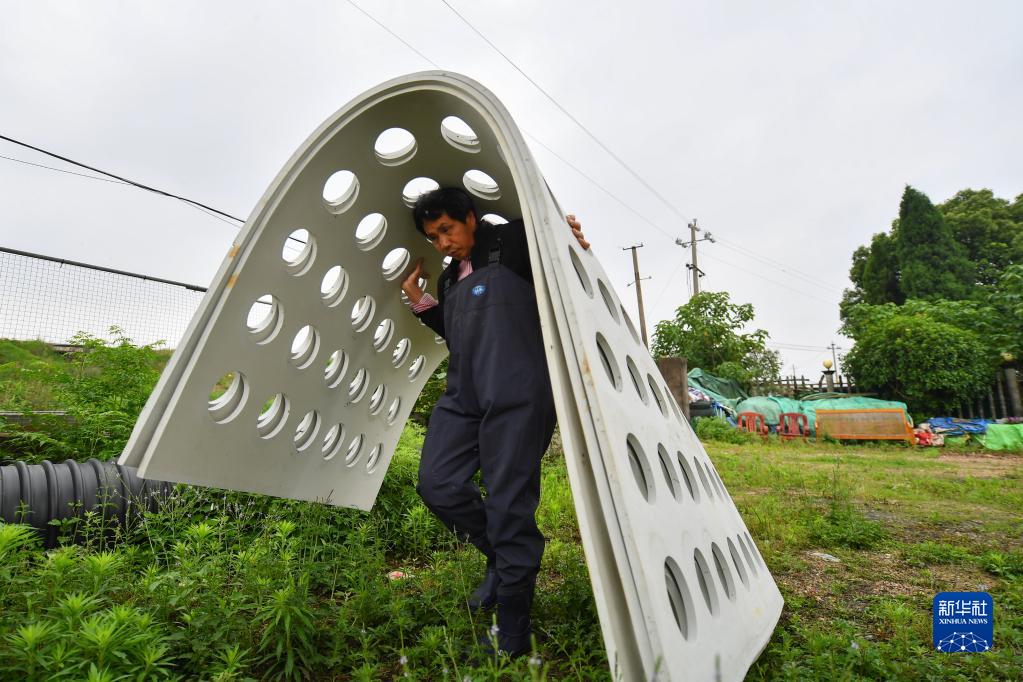 5月11日,在長(cháng)沙市望城區高塘嶺街道湘江村,農民搬運用于水上種植的浮板。