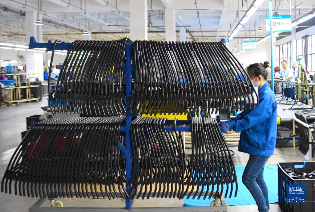 5月10日,工作人員在河南省駐馬店市平輿縣一家戶(hù)外用品企業(yè)安裝車(chē)間忙碌。