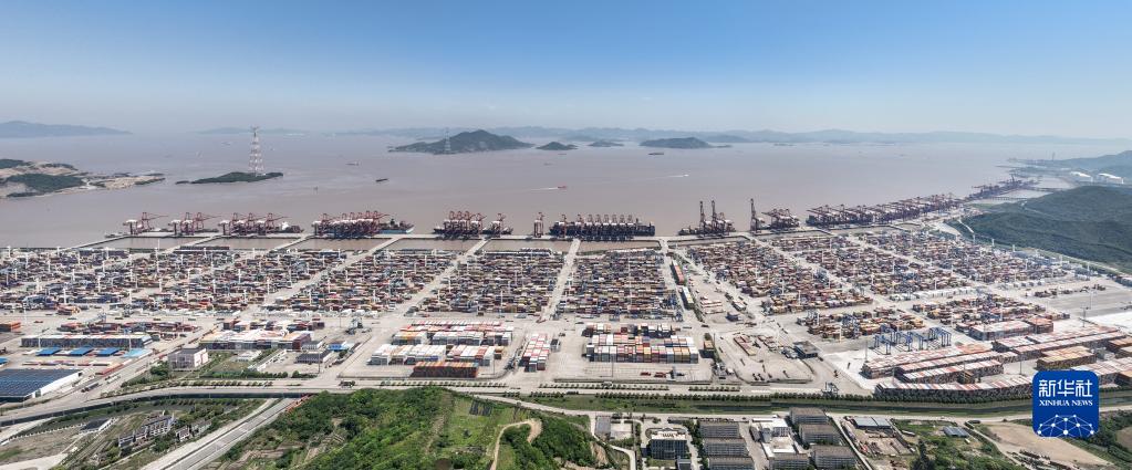 5月9日拍攝的寧波舟山港穿山港區(無(wú)人機全景照片)。新華社記者 翁忻旸 攝