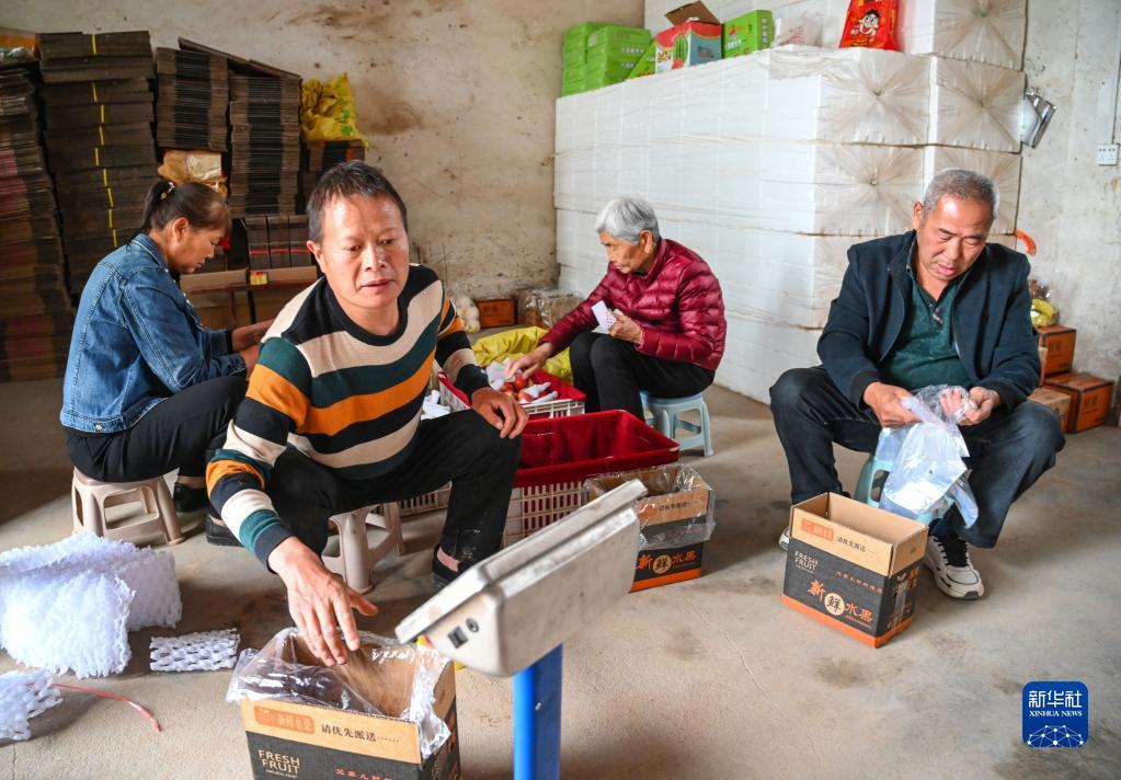 5月10日,馬寧的丈夫侯家喜(前)將油桃裝箱稱(chēng)重。