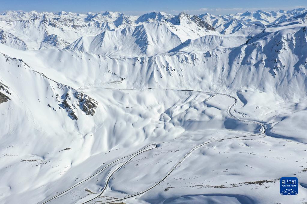 獨庫公路向天山深處延伸,由烏蘭薩德克養護站工人耗時(shí)多日清理出的路面已清晰可見(jiàn)(5月10日攝,無(wú)人機照片)。