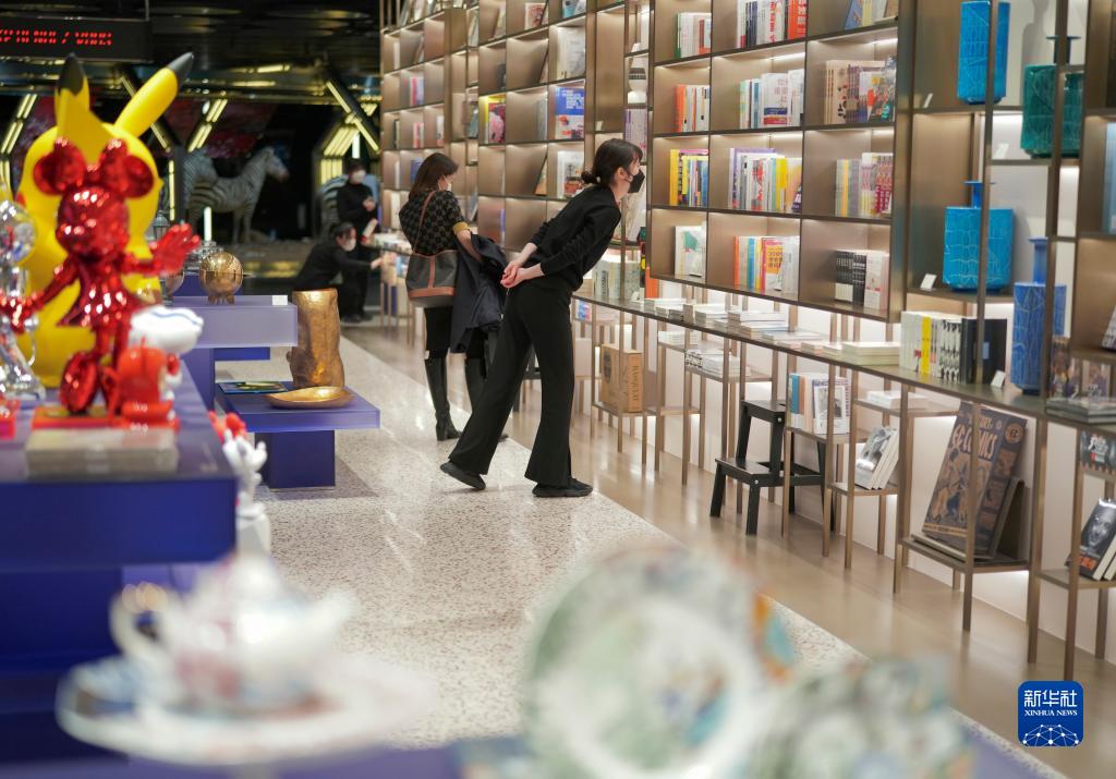 顧客在西安一家商場(chǎng)內選購圖書(shū)(2022年1月24日攝)。
