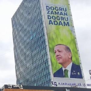 這是5月11日在土耳其安卡拉拍攝的埃爾多安和凱末爾·克勒奇達爾奧盧的競選海報(手機拍攝)。