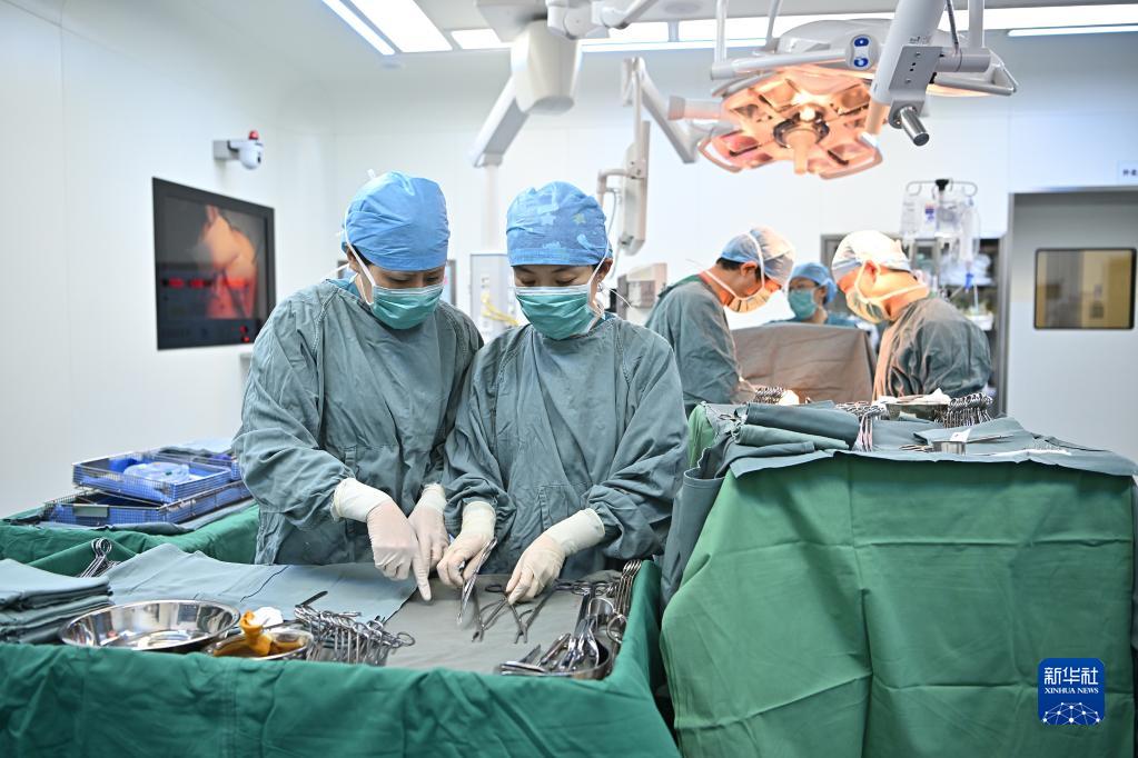 5月11日8時(shí)許,北京協(xié)和醫院手術(shù)室護士張進(jìn)軍(前左)臺上帶教手術(shù)室年輕護士王璐(前右)。