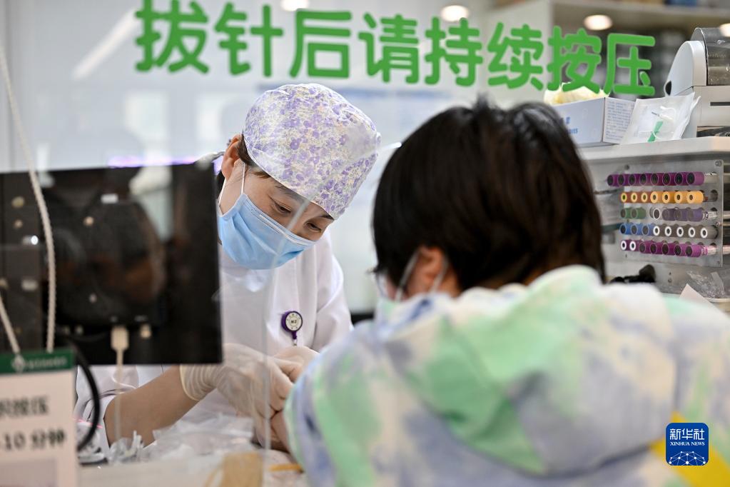 5月9日9時(shí)許,北京協(xié)和醫院門(mén)診治療室護士武曉為患者采血。