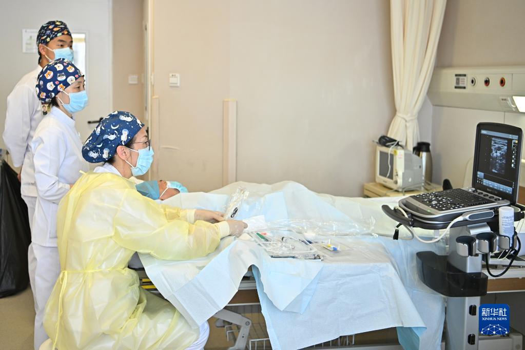 5月9日14時(shí)許,北京協(xié)和醫院臨床營(yíng)養科護士長(cháng)孫文彥(右一)在給患者置入外周中心靜脈導管(PICC)。外周中心靜脈導管是危重癥和慢病患者的“生命線(xiàn)”,1997年北京協(xié)和醫院引進(jìn)PICC置管術(shù)。