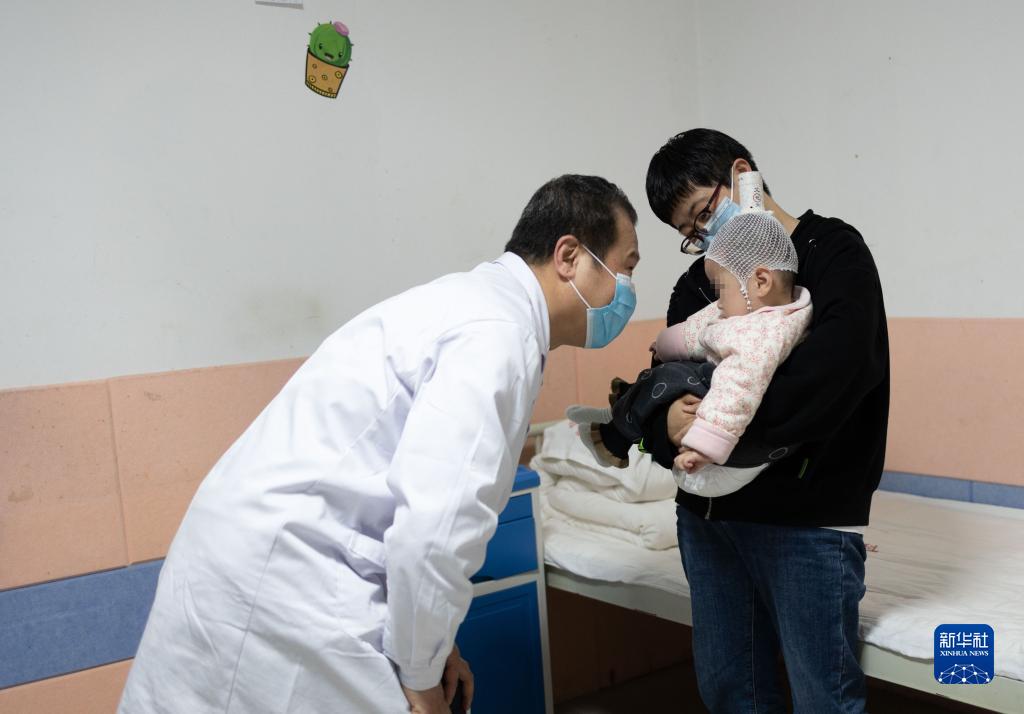5月8日晚,渭南腦病康復醫院的一名醫生在與患兒交流。