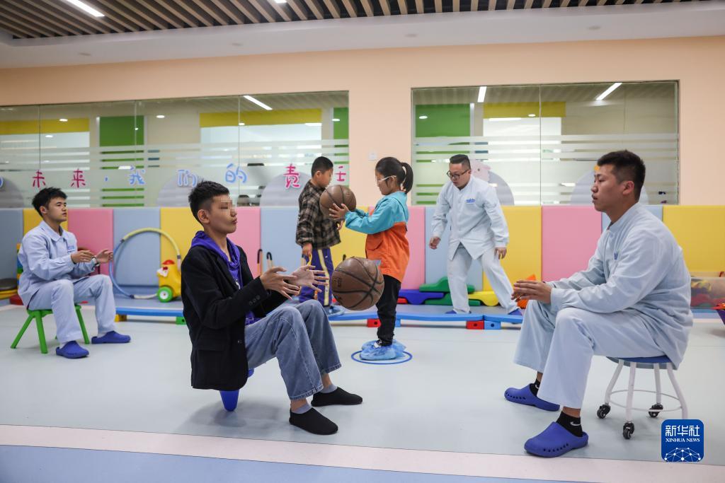 5月11日,康復治療師在渭南腦病康復醫院幫助患兒進(jìn)行感覺(jué)統合訓練。