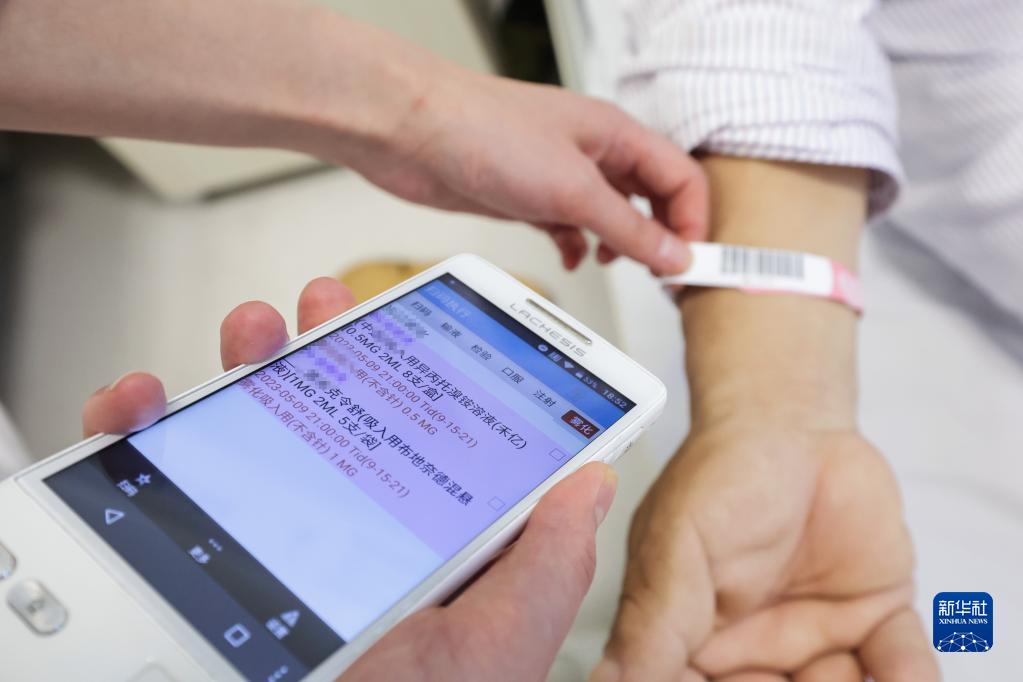 5月9日18時(shí)許,北京協(xié)和醫院內分泌科護士為患者進(jìn)行治療前的核對。