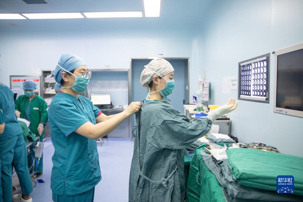 5月9日20時(shí)許,北京協(xié)和醫院手術(shù)室護士張圣潔(左)和喬亞如進(jìn)行急診手術(shù)開(kāi)臺準備工作。
