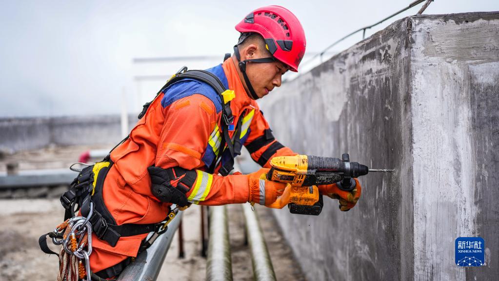 六盤(pán)水消防救援支隊隊員在打鉆孔(5月11日攝)。