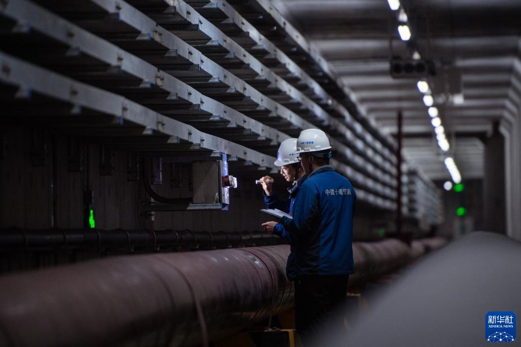 5月12日,中建十堰管廊公司運維人員在紫霄大道管廊內巡檢。