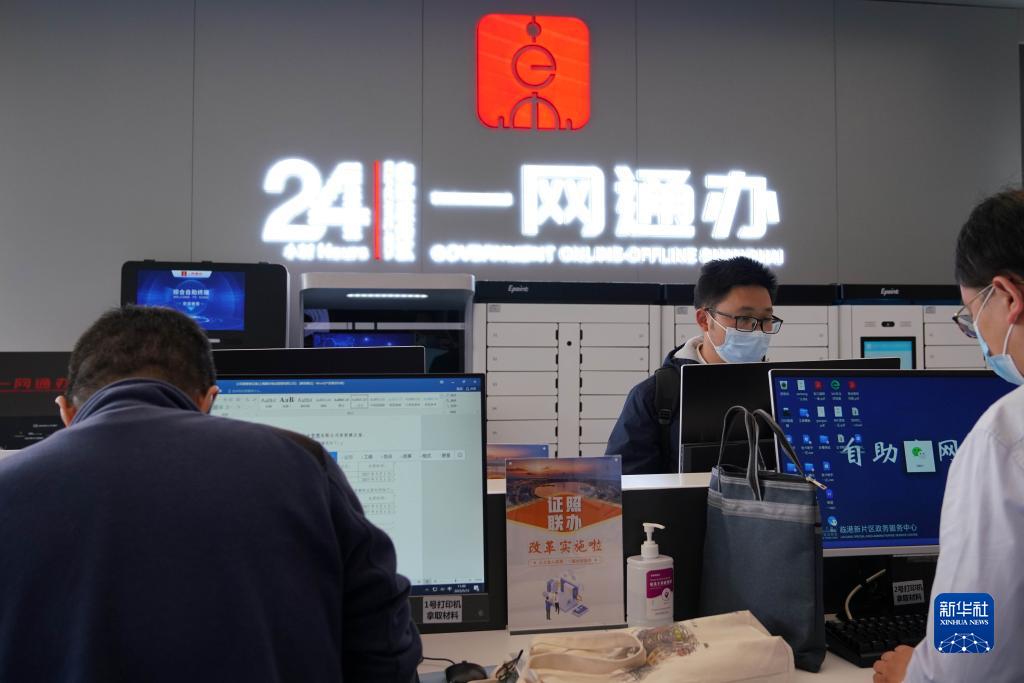 5月12日,市民在中國(上海)自由貿易試驗區臨港新片區政務(wù)服務(wù)中心“一網(wǎng)通辦”業(yè)務(wù)區辦理業(yè)務(wù)。