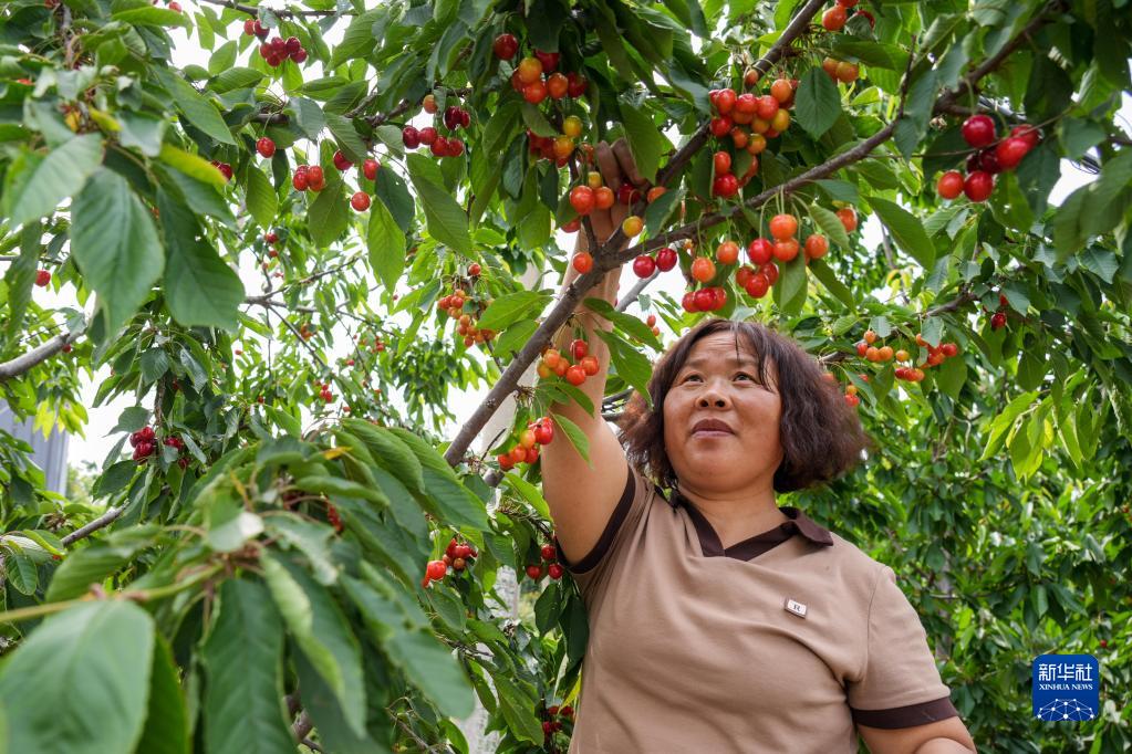 5月12日,五峰山街道紙坊村村民張景峰在自家種植園內采摘櫻桃。