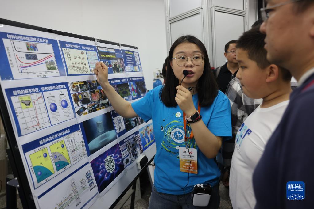 5月13日,在中科院物理研究所超導國家重點(diǎn)實(shí)驗室,志愿者在向參觀(guān)者普及超導知識。