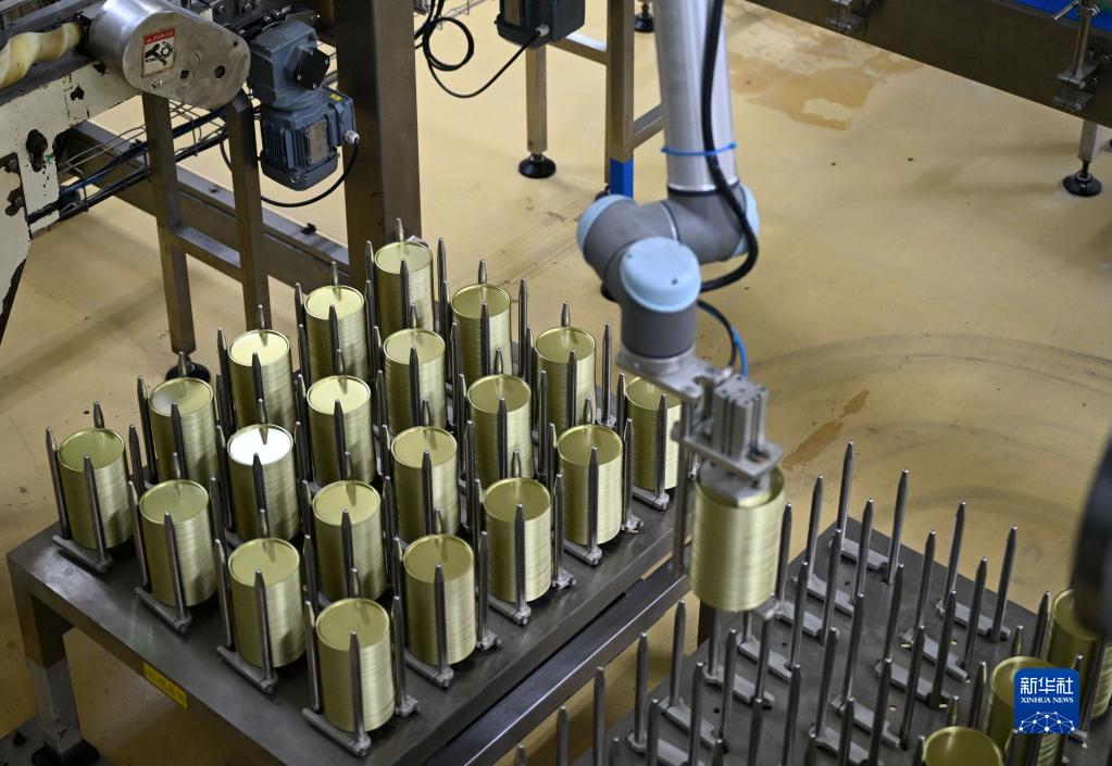 在聯(lián)合利華天津食品工廠(chǎng)黑燈車(chē)間,自動(dòng)化機械臂正在作業(yè)(5月11日攝)。