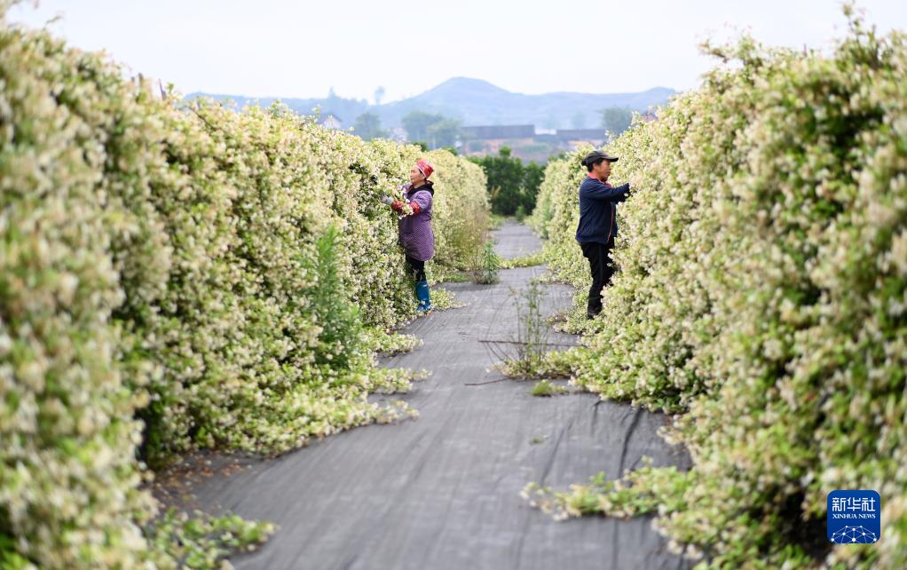 5月13日,村民在貴州省黔東南苗族侗族自治州黃平縣舊州鎮文峰村花卉基地管護茉莉花。