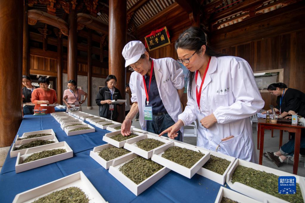 5月13日,在浙江省金華市武義古城,評委在現場(chǎng)進(jìn)行茶葉質(zhì)量評比。