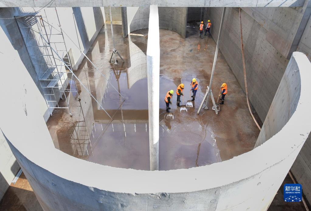 5月13日,工人在零碳產(chǎn)業(yè)園工業(yè)污水處理廠(chǎng)及水資源再生利用項目施工現場(chǎng)作業(yè)。