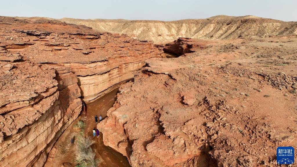 5月13日,游客在內蒙古阿拉善盟阿拉善左旗西部夢(mèng)幻峽谷景區參觀(guān)游玩(無(wú)人機照片)。