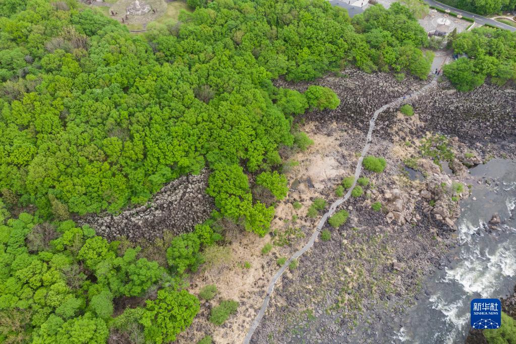 這是5月14日在黑龍江省牡丹江市拍攝的鏡泊湖世界地質(zhì)公園風(fēng)光(無(wú)人機照片)。