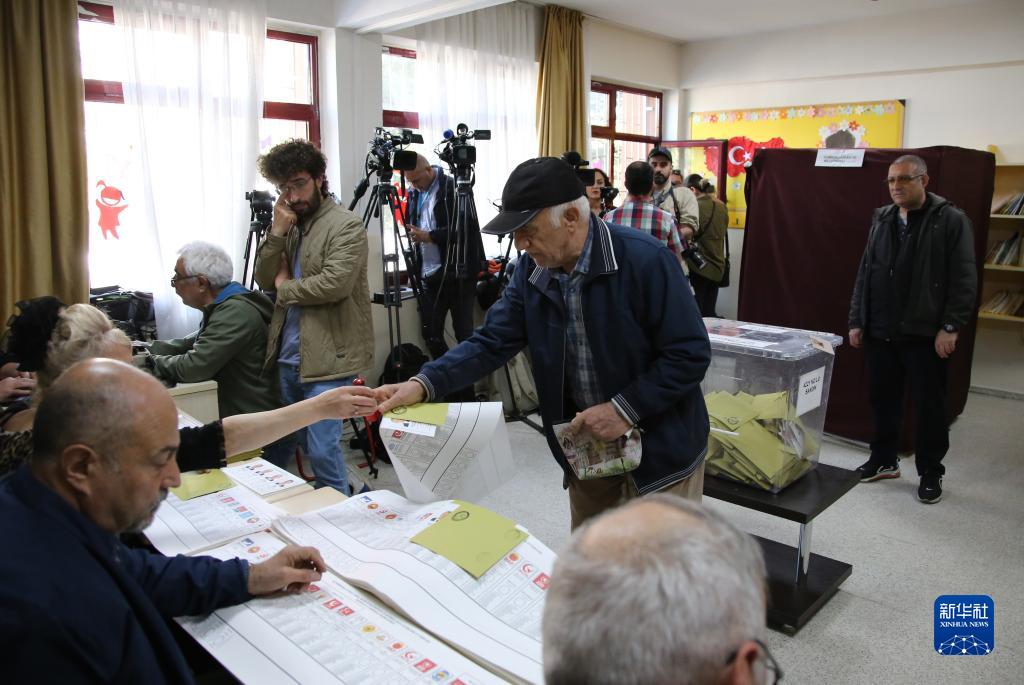5月14日,在土耳其安卡拉,民眾在一處投票站參加投票。