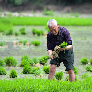 5月14日,村民在貴州省黔東南苗族侗族自治州岑鞏縣思旸鎮新安村農田里移栽水稻秧苗。
