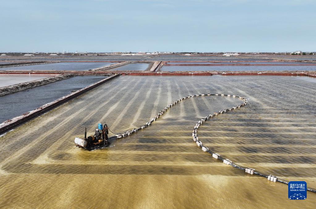 眼下正值長(cháng)蘆鹽區海鹽生產(chǎn)基地春鹽收獲季節,河北省唐山市曹妃甸區南堡鹽場(chǎng)的工人開(kāi)始扒鹽作業(yè),鹽田呈現出一派繁忙景象。據介紹,南堡鹽場(chǎng)是我國長(cháng)蘆鹽區海鹽生產(chǎn)基地之一,當地依托鹽資源豐厚優(yōu)勢,大力發(fā)展鹽化工產(chǎn)業(yè),助推經(jīng)濟發(fā)展。