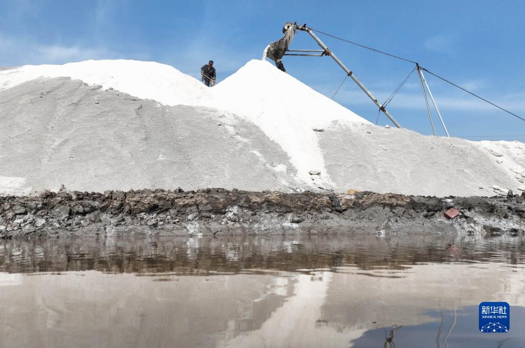 眼下正值長(cháng)蘆鹽區海鹽生產(chǎn)基地春鹽收獲季節,河北省唐山市曹妃甸區南堡鹽場(chǎng)的工人開(kāi)始扒鹽作業(yè),鹽田呈現出一派繁忙景象。據介紹,南堡鹽場(chǎng)是我國長(cháng)蘆鹽區海鹽生產(chǎn)基地之一,當地依托鹽資源豐厚優(yōu)勢,大力發(fā)展鹽化工產(chǎn)業(yè),助推經(jīng)濟發(fā)展。