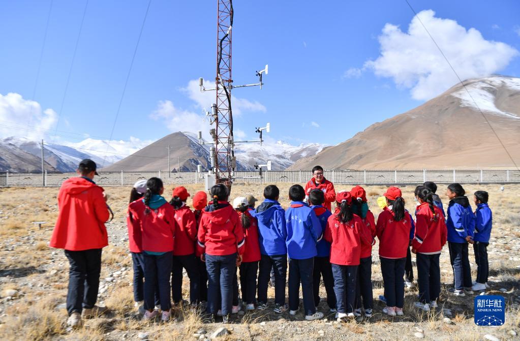 5月15日,珠峰站工作人員席振華給孩子們講解科學(xué)儀器的功能作用。