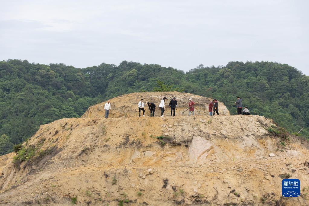 5月14日,李秀雄一家和工人在四川省榮縣東興鎮長(cháng)興林場(chǎng)一處山坡上種油茶樹(shù)苗。