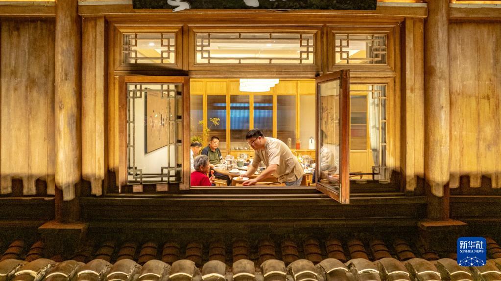 初夏時(shí)節,山東省青島市的即墨古城里燈火通明,古色古香的建筑與流光溢彩的燈光吸引了不少游客前來(lái)游覽、購物,熱鬧的夜間消費讓城市持續煥發(fā)活力。