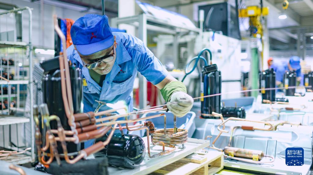 5月15日,山東省青島市即墨區通濟新經(jīng)濟區一家空調生產(chǎn)企業(yè)的工人在生產(chǎn)線(xiàn)上忙碌。