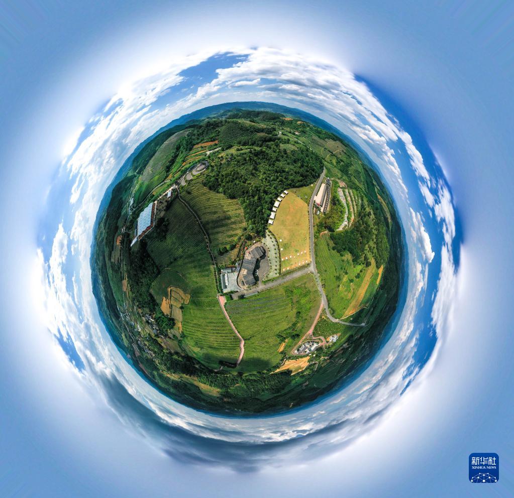 這是5月16日拍攝的貴州省麻江縣藍夢(mèng)谷生態(tài)藍莓園(無(wú)人機全景照片)。