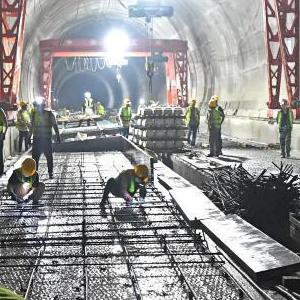 這是5月16日在中鐵五局南玉鐵路6標段拍攝的施工現場(chǎng)(無(wú)人機照片)。
