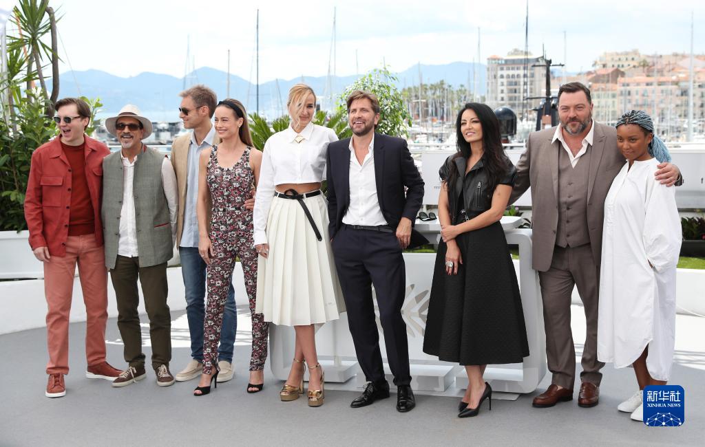 5月16日,在法國南部海濱城市戛納,電影節主競賽單元評審團主席、瑞典導演魯本·奧斯特倫德(右四)攜眾評委亮相。