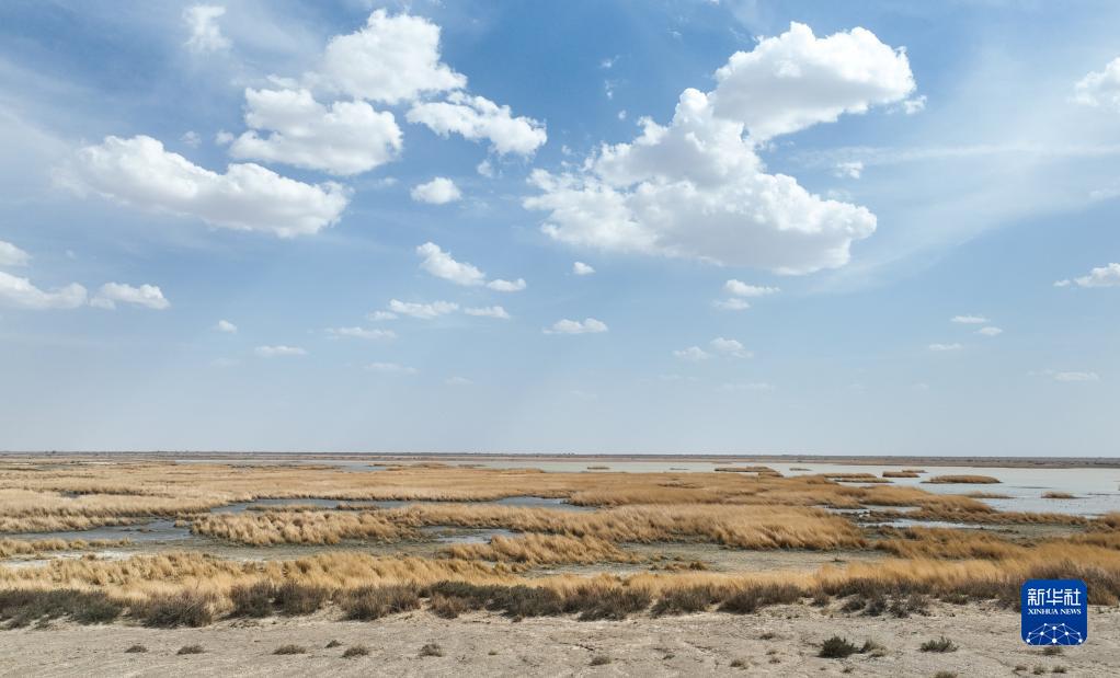 5月15日在內蒙古阿拉善盟額濟納旗西居延海拍攝的風(fēng)光(無(wú)人機照片)。