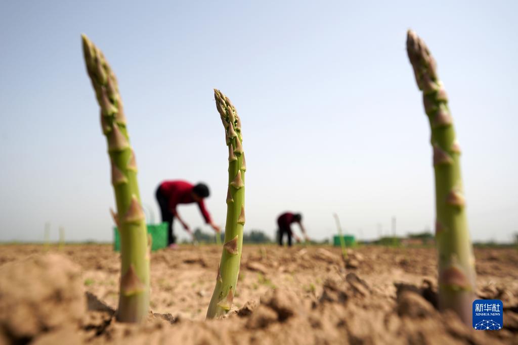 5月17日,河北省柏鄉縣西蘇村農民在采收蘆筍。