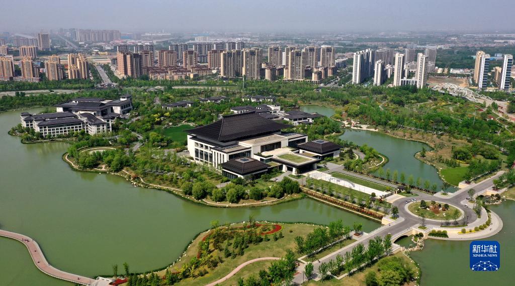 位于西安浐灞生態(tài)區的西安國際會(huì )議中心(4月16日攝,無(wú)人機照片)。