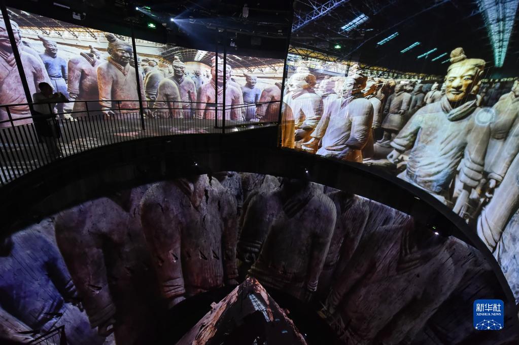 在位于北京的RE?!H創(chuàng )憶館,觀(guān)眾在沉浸式展廳觀(guān)看兵馬俑影像(5月14日攝)。