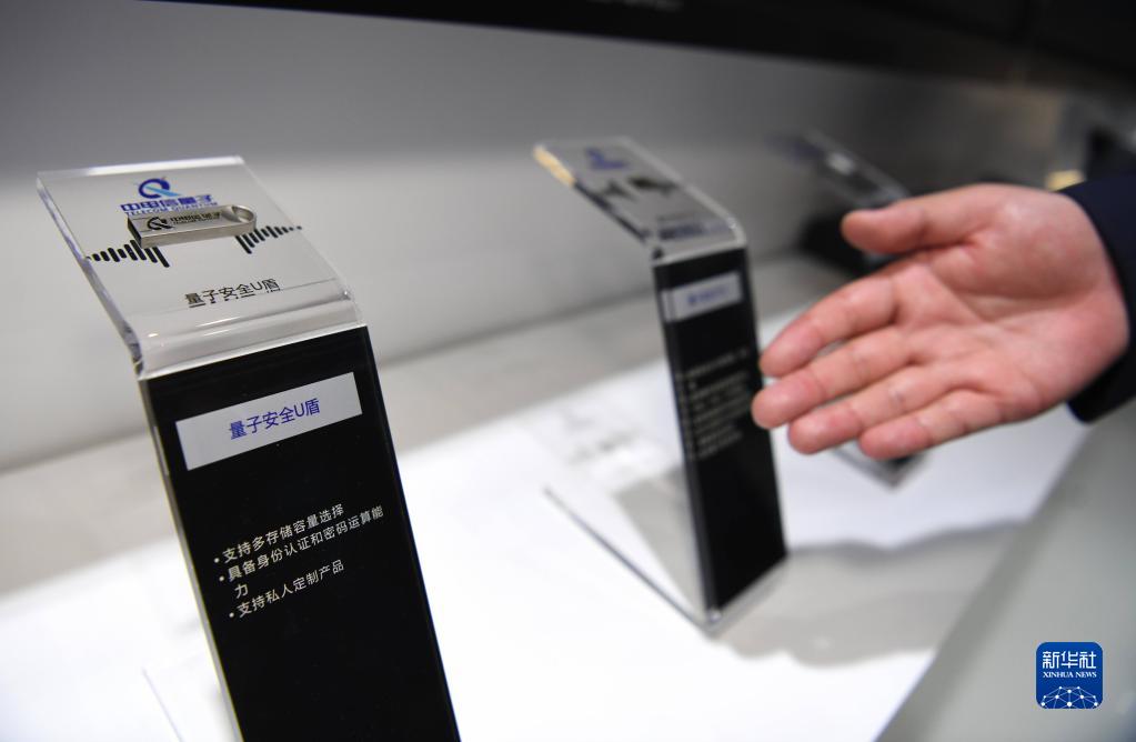 5月17日,參展人員在“信息化助力中國式現代化發(fā)展成果展”上介紹量子安全U盾產(chǎn)品。
