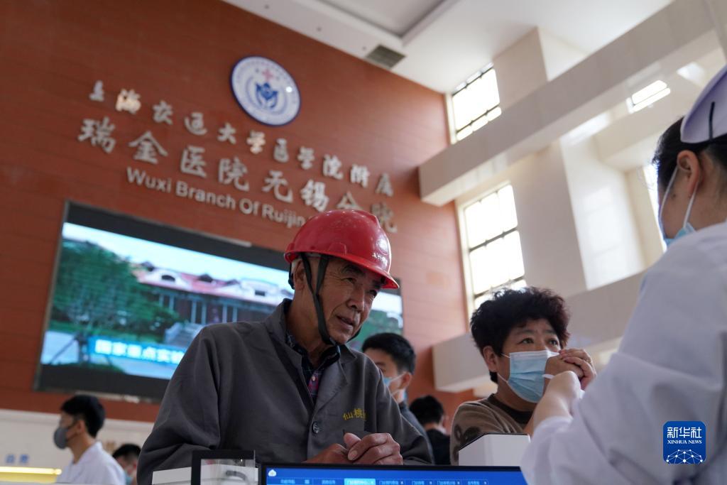 5月18日,在位于江蘇省無(wú)錫市的瑞金醫院無(wú)錫分院,就診者在服務(wù)臺咨詢(xún)。