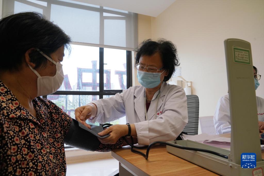 5月18日,在位于江蘇省無(wú)錫市的瑞金醫院無(wú)錫分院心血管內科門(mén)診,來(lái)自上海瑞金醫院的主任醫師何汝敏為門(mén)診患者測量血壓,她每周都要來(lái)無(wú)錫分院出診。