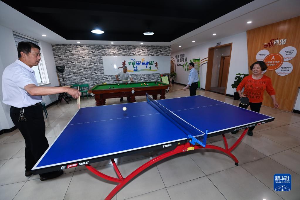 5月18日,老人們在織里鎮晟舍村居家養老服務(wù)中心打乒乓球。
