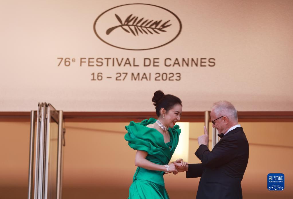 5月17日,在法國戛納舉行的第76屆戛納國際電影節上,中國演員高葉在日本影片《怪物》首映禮上與戛納電影節藝術(shù)總監蒂埃里·弗雷莫交談。