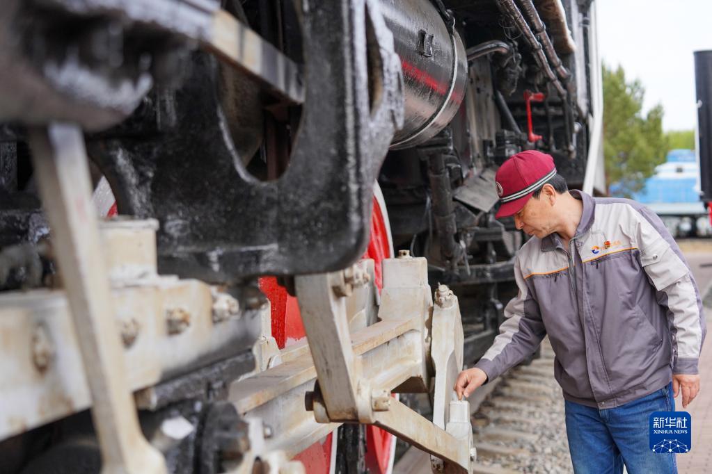5月17日,中國鐵路沈陽(yáng)局集團有限公司白城機務(wù)段工作人員在大安北蒸汽機車(chē)陳列館巡查。